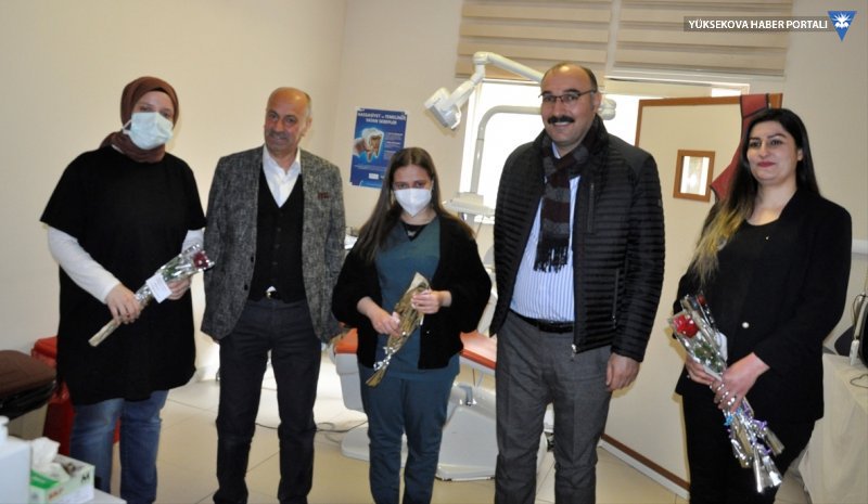 Şemdinli Belediye Başkanı Tahir Saklı Milli Eğitim Müdürü Cihat İnan ile hastane ve okulları ziyaret ederek, kadınlara karanfil ve gül hediye etti.