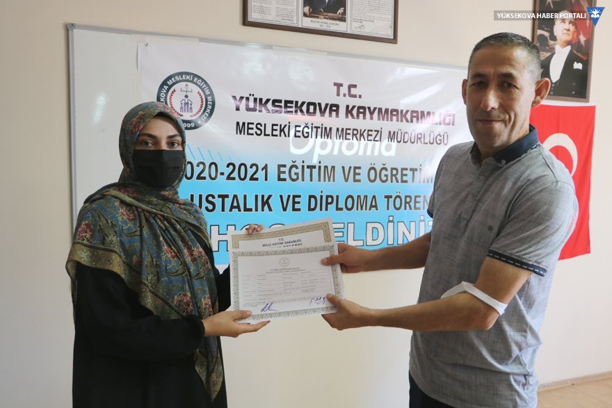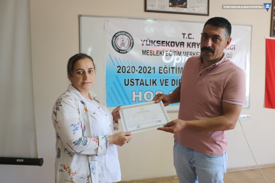 Milli Eğitim Bakanlığınca (MEB) yapılan düzenlemenin ardından 2020-2021 eğitim ve öğretim yılı Yüksekova'da bu yıl ilk defa 130 usta, telafi programını tamamlayarak, ustalık sertifikalarını ve meslek lisesi belgelerini düzenlenen törenle aldı.