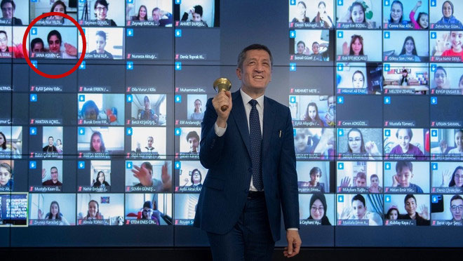 Milli Eğitim Bakanı Ziya Selçuk, 81 ilden öğrencilerin katılımıyla gerçekleşen online programa Yüksekova'yı temsilen Jana Asmin Çapraz katıldı.