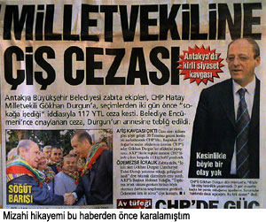 Bir kaynaşma oldu, meğer önümdekinin pantolonu ve ayakkabısı ıslanmış. Herif döndüğü gibi elinin tersi ile suratımın ortasına bir şapalak yapıştırmaz mı, gözümlen kıvılcımlar çıktı sanki.