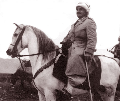 Doğumundan ölümüne kadar ömrünün tamamı özgürlük mücadelesi içinde geçen Molla Mustafa Barzani çok sevdiği beyaz atının sırtında.