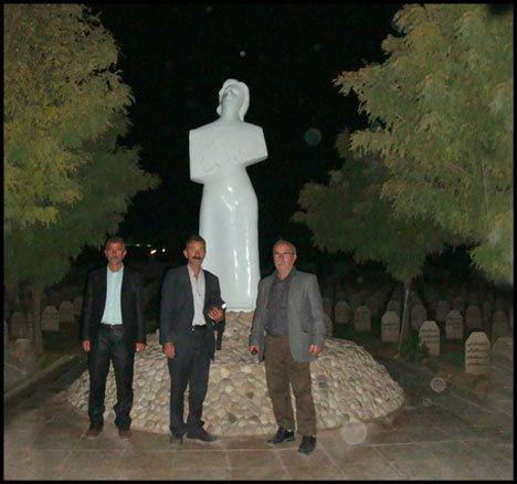 Beş bin Şehitli Halepçe mezarlığının yanı başında elleri kopuk bir ananın beyaz heykeli, sembol seçilmiş.