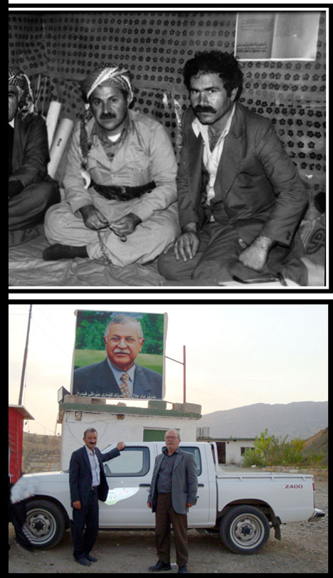 Alttaki fotoğraf ise: Süleymaniye’de bir caddedeki bir panonun önünde çektirdiğimiz bu fotoğraflardan artık Irak’ın her caddesinde, iş yerlerinde resmi dairelerin duvarlarında görebiliyorsunuz.