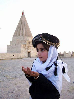 6-Êzidilerin kıblesi Güneştir. Sabah ve akşam güneşe dönerek namazlarını kılarlar fotoğrafta, güneşe dönerek dua eden bir Êzidi kızı.