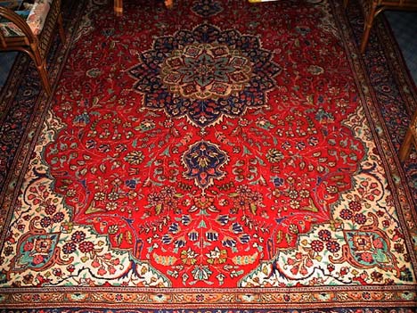 Tipik bir KAŞAN halısı. İran"da bölgelerdeki dokuma tarzı ve renk hakimiyetleri birbirinden aydır. Mesela Tebriz bölgesinde beyaz hakimiyetli halılar dokunurken, Hoy ve Urmiye bölgesindeki halıların dokuması ise küçük küçük motiflerden oluşan koyu renklerle dokunur.