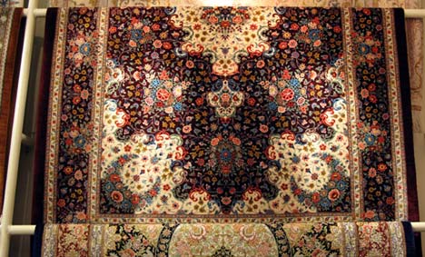 Hele hele İpek Acem halılarını görüp de iç geçirmemek elde değil inanın. Hani üretim safhasına da değinmeden geçemiyeceğim. Yeterince İpeğini de İran"ın kendisi üretiyor. Bir kilo ham ipeğin kilosunun 70-80 lira ve üç dört kilo ipek işlenip halı haline getirildiğinde ise bu halının 8-10 bin liraya satıldığını söylesem İran halkının çalışkanlığını inkar edebilir miyiz? Hemen hemen her evde bir tezgah vardır, memuru işçisi çiftçisi akşam eve geldiğinde çoluk çocuğu ile hem çayını yudumluyor hem birkaç sıra ilmik atıyor, birkaç ay sonra da bunu iyi bir fiyata satabiliyor.