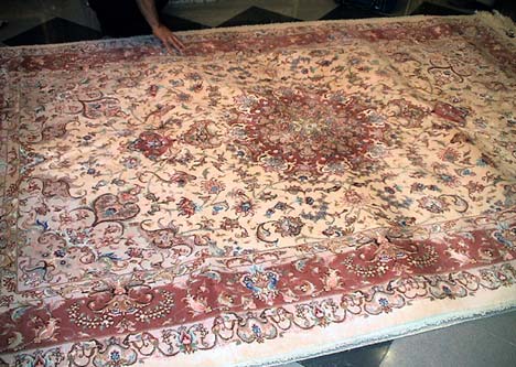 Klasik bir İran (Acem) halısı. Dünyadaki tüm el dokuması halıların yüzde kırkının İran"da dokunduğunu söylesem inanır mısınız bilmem. Ben ekonomist değilim ama öteden beri iyi bir fotoğrafçı olduğum söylenir ve iyi bir gözümün olduğunu biliyorum. İran"da her kentteki pazarlarda gördüğüm kadarıyla İran yalnız petrolü ile zengin değildir. Onurlu ve üretici İran halkının gerek dokudukları gerekse el sanatları ile ürettikleriyle ülkelerine kazandırdıkları meblağ petrolden önde olmasa da (ki önde olabileceği kanaati var bende) hemen petrolden sonra geliyordur. Yani petrolü olmasa da İran ürettikleri ile de her zaman ayakta kalabilir.