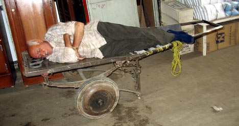 Tebriz çarşısındaki bir araba hamalı da eve gitmeğe üşenmiş olacak ki biz yanından kaç kez geçtik bilmiyorum o böylece birkaç saat uyudu arabasının üzerinde.