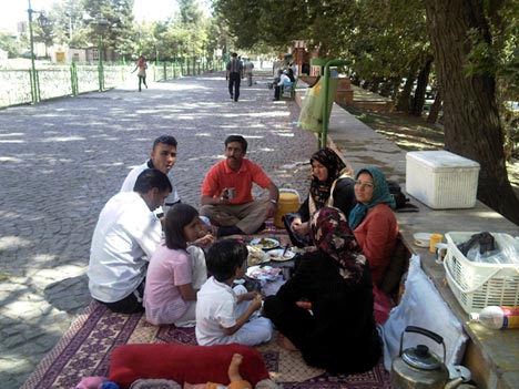 Böyle manzaralara İran"da her yerde rastlayabilirsiniz. Aile almış yemeğini gelmiş ağaçların gölgelediği yola sermiş sofrasını rahat rahat öğlen yemeğini yiyebiliyor her aile. Kermanşahlı bu aileden izin alarak onları fotoğrafladım. Tabi yediklerinden bana da zorla tattırdılar ve büyük ilgi gösterdiler. Evlerine de buyur ettiler ama gidemedim tabi