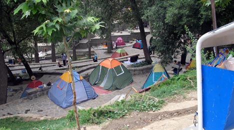 Yine yaz aylarında her yeşillikte her ağaç altında hatta refujler de böyle manzaralara rastlayabilirsiniz. Tüccar esnaf veya memur aile çadırını kuruyor bir ağacın altına, yatağından ihtiyacı olan eşyalara kadar her şeyi çadırın içindedir, kilitsiz anahtarsız. Akşam olduğunda da ailesi ile çadırına gelir bazen çadırın içinde bazen da dışındaki uyku tulumlarında uyumaktadırlar. Ben de uzun yıllar tatilimi hep dağlarda yaylalarda böyle küçük çadırlarda geçirdiğim için keşke mümkün olsa da Adana"da, Urfa"da, Antep"te, Trabzon"da, Erzurum"da, Van"da veya Hakkari"deki bir parkta böyle bir çadırda yalınız başıma da olsa dinlenebilseydim, diye geçirirdim içimden.