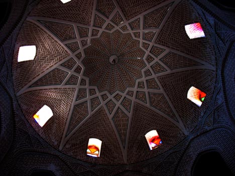 Sadece tuğlalarla örülerek süslenmiş büyük bir kubbe.