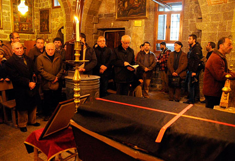 Ömrünün son otuz yılını verdiği kilisenin avlusu defalarca kendisinin de katıldığı, yine kendisinin de sakini olarak defalarca ev sahipliği yaptığı mekânı bu kez onun cenaze törenine ev sahipliği yapıyordu.