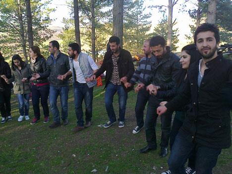 Kurd bi govendê xwe îfade dikin; Weke ciwanên Geveriyan ku li seyrangeha Amedê Gever îfade dikirin.